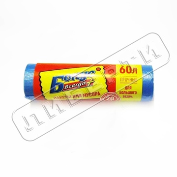 Пакет для мусора 60*80 в ассортименте 60л/20шт. БО...